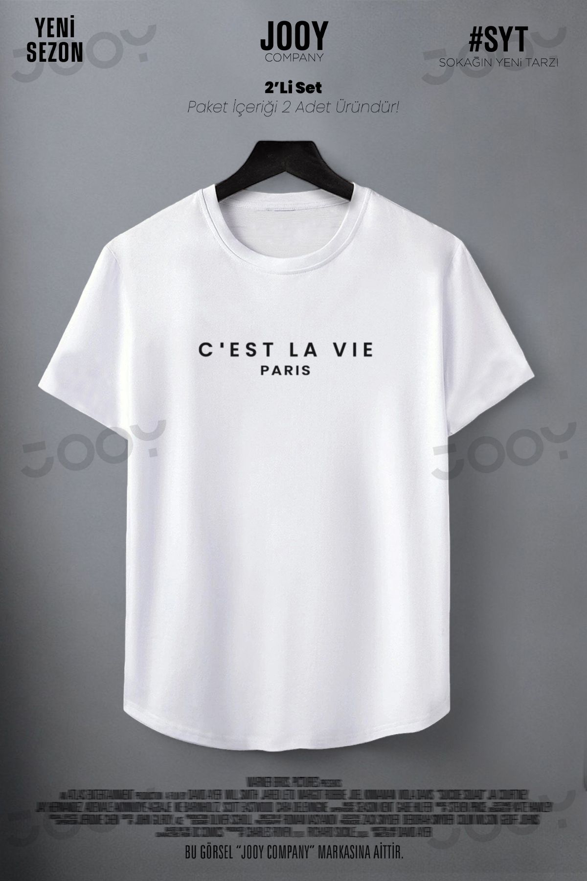 C’est La Vie Paris Baskılı Siyah Beyaz Oval Kesim Tshirt 2’li Set