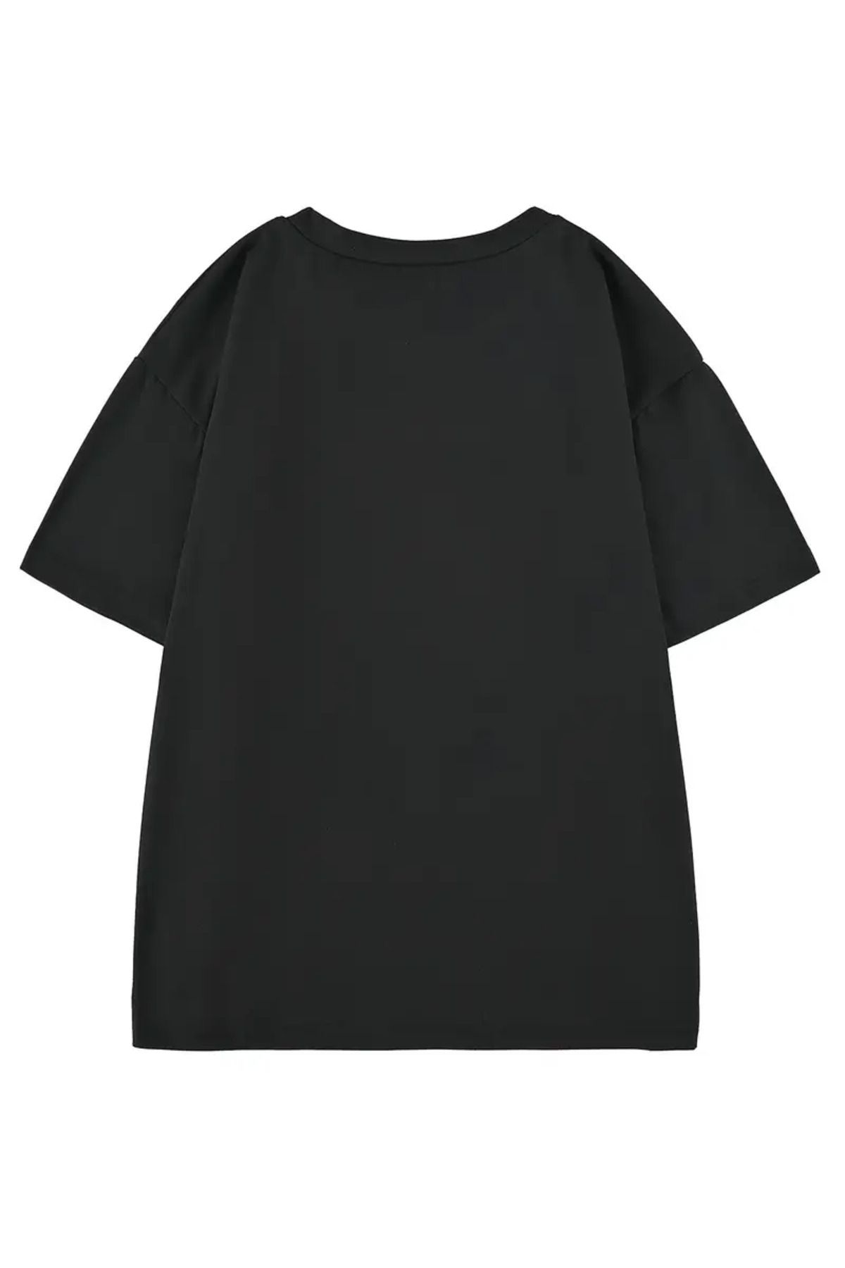 Free Happy Ayıcık Baskılı Siyah Oversize T-Shirt
