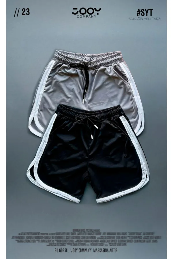 Gri-Siyah File Basketbol Antreman Sporcu Şortu Çizgi Detaylı 2’li Set