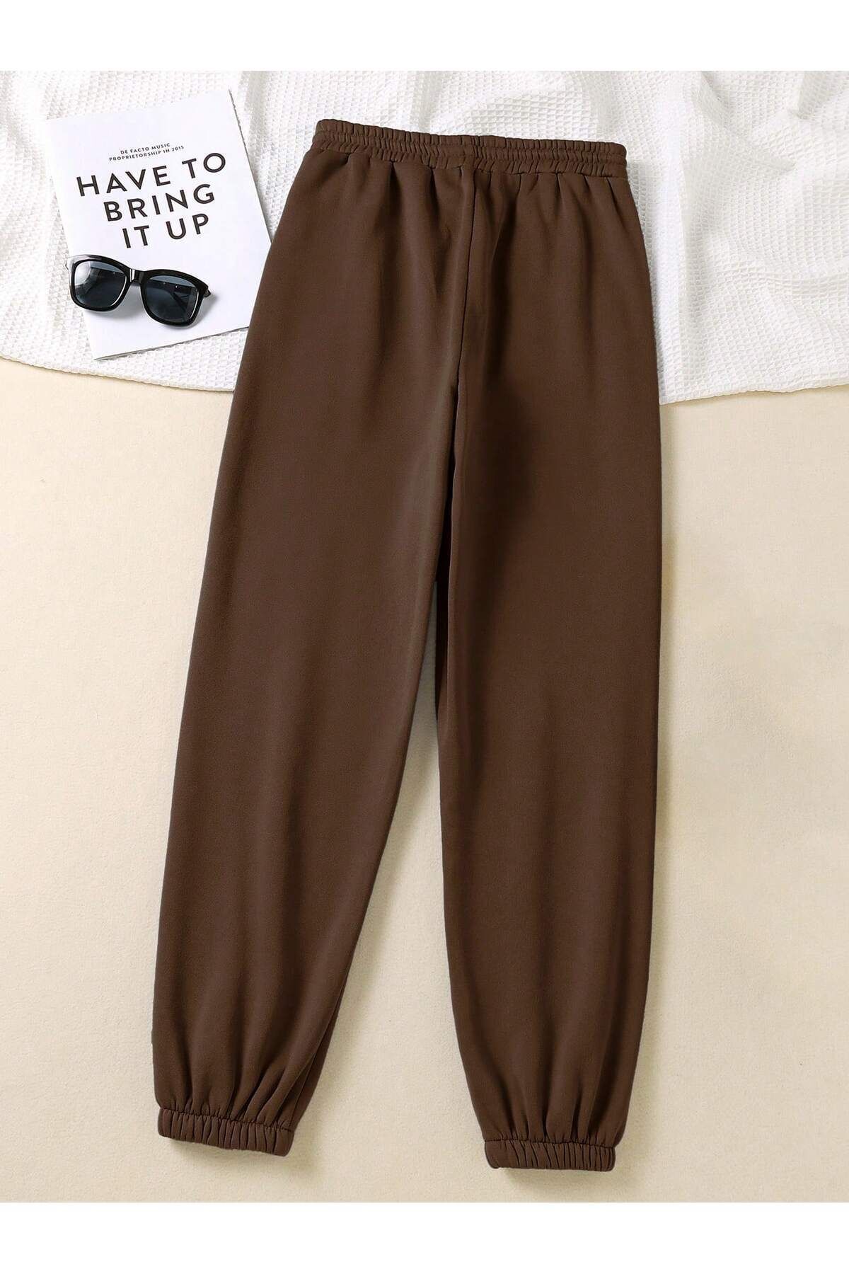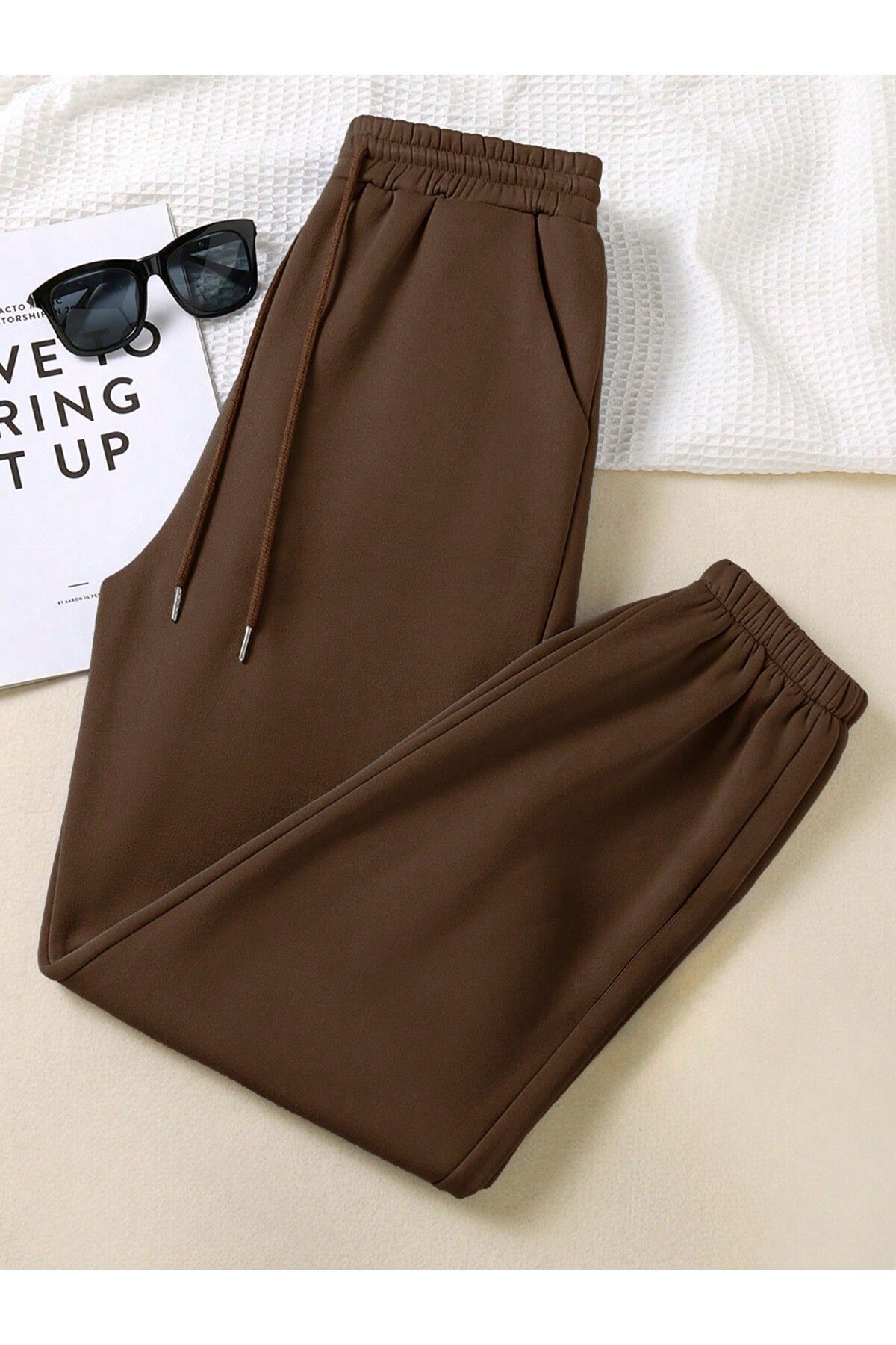 Kahverengi Bel Paça Lastikli 3 İplik Kalın Pamuklu Kadın Jogger Eşofman Altı