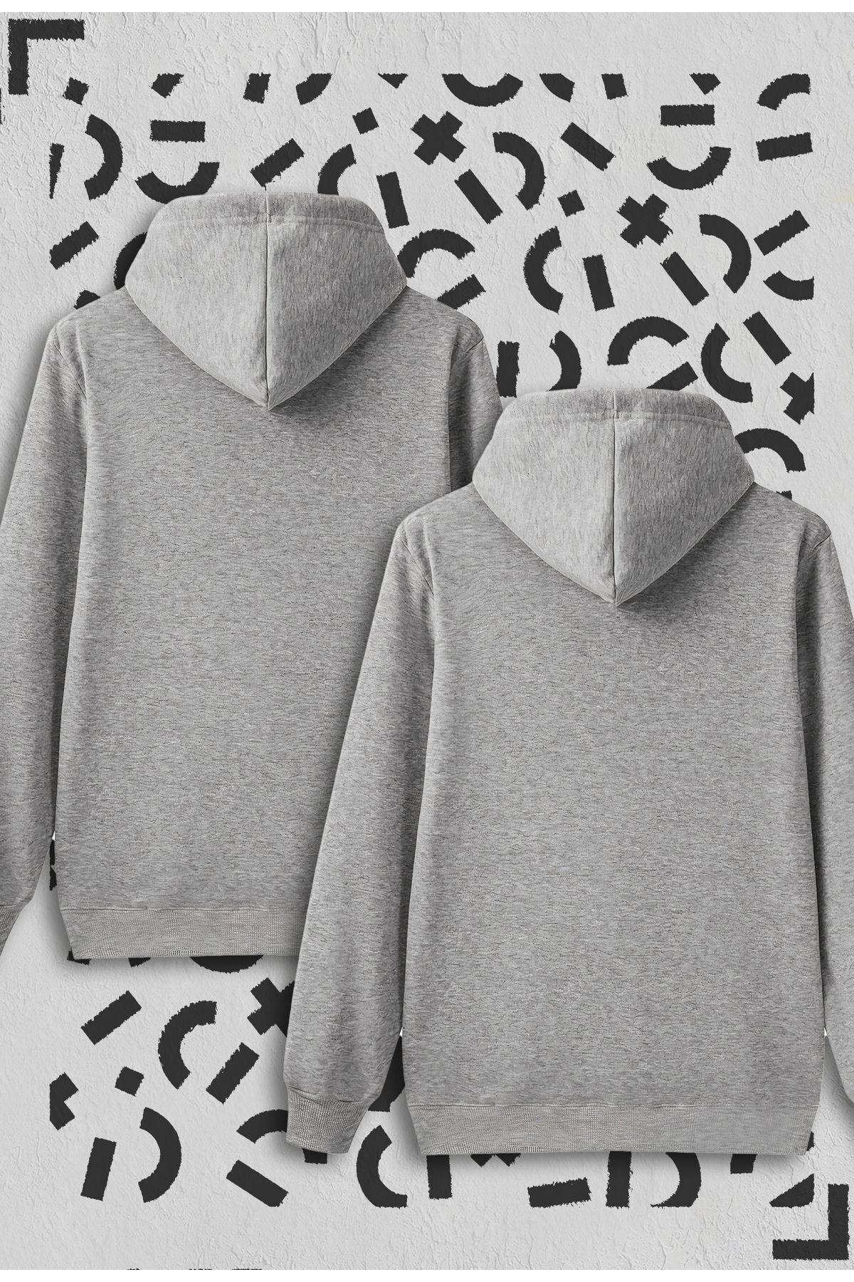 Kalp Baskılı Sevgili Çift Kombini Gri Kapüşonlu Sweatshirt 2’li Set