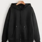 Siyah 2 İplik Mevsimlik Fermuarlı Kapüşonlu Polar Hırka Ceket