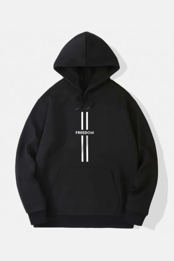 Siyah Freedom Baskılı Kapüşonlu Sweatshirt Hoodie