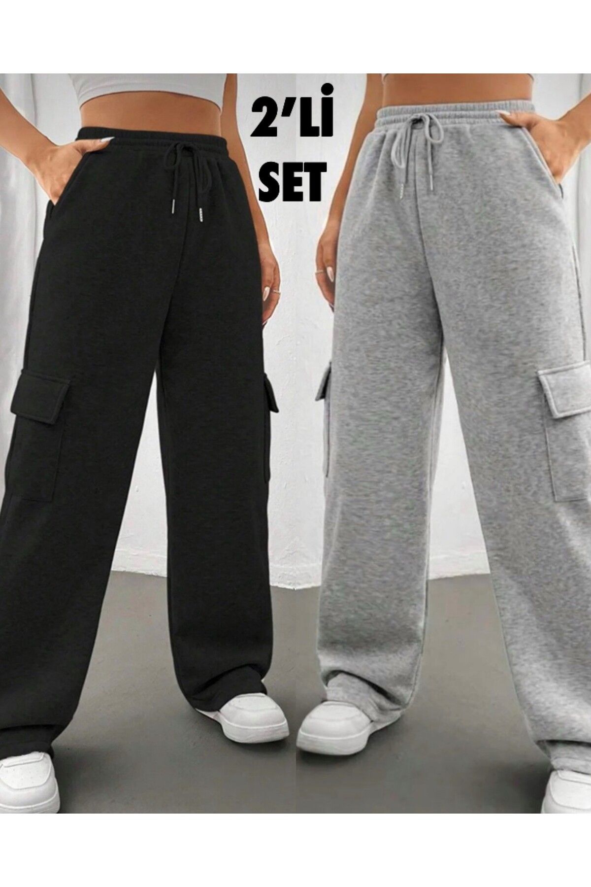 – Günlük kullanım için ideal, siyah ve gri renk seçenekleriyle şıklığı ve rahatlığı bir arada sunar.; – İki parçadan oluşan set; eşofman altı ve üstü ile tam bir kombin oluşturur.; – Her yaş grubuna hitap eden tasarımıyla geniş bir kullanıcı kitlesine uygunluk sağlar.; – Mevsim geçişlerinde de tercih edebileceğiniz bu ürün, tüm sezonlarda konforlu bir deneyim sunar.; – Esnek bel yapısı sayesinde gün boyu rahat hareket etme olanağı tanır.; – Kadın ve kız çocuklarına özel olarak tasarlanmış olup, herkes için uygundur.; – Yumuşak dokusuyla öne çıkan örme kumaşı, uzun süreli kullanımlarda bile formunu korur.; – Üretimi Türkiye’de gerçekleştirilen bu ürünle yerel üretim avantajını da yanınızda taşırsınız.; – Standart boy kesimiyle farklı vücut tiplerine kolayca uyum sağlar.; – Regular kalıp seçeneğiyle vücudu saran ancak sıkmayan ideal oturuşa sahiptir.; – Pamuk polyester karışımından üretilmiş materyali sayesinde nefes alabilirlik özelliği ön plana çıkar.; – Uzun paça boyu ve boru paça tasarımı modern görünüm kazandırırken pratik kullanım imkanı sunar.; – Kargo cep detayı hem fonksiyonellik hem de stil açısından ekstra özellik katmaktadır.