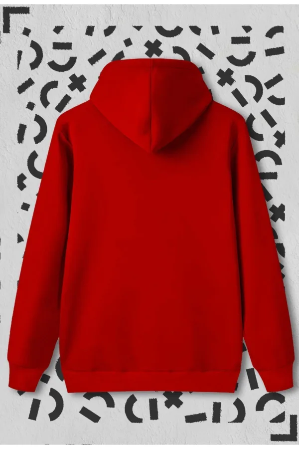 Unisex Bardak Baskılı Kırmızı Kapüşonlu Sweatshirt