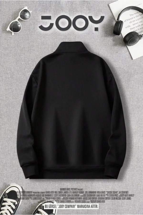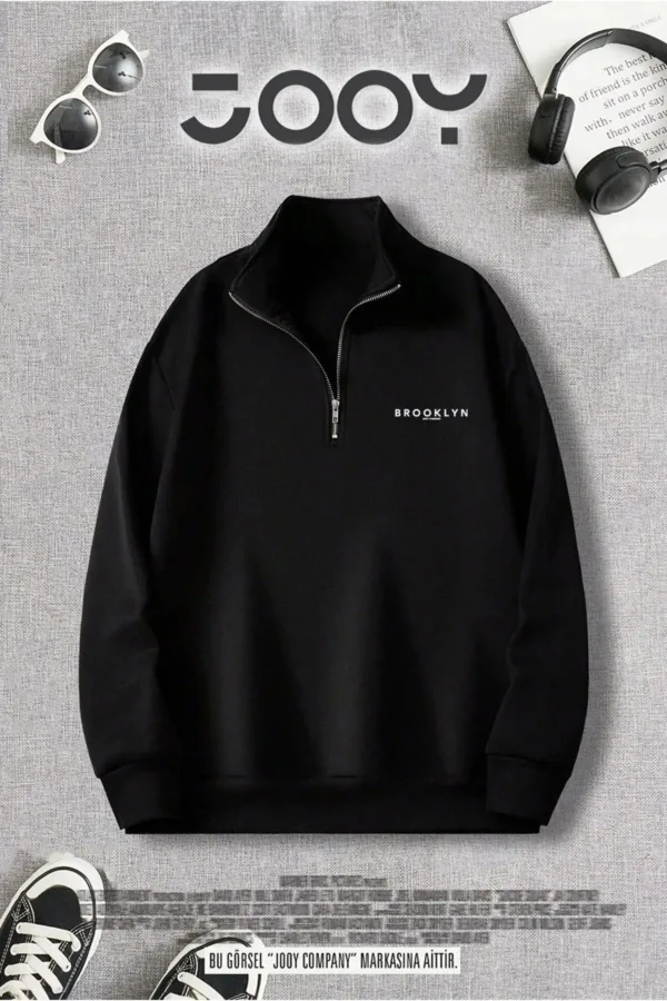 Rahat kesimiyle günlük kullanıma uygun, Brooklyn temalı baskısıyla dikkat çeken yarım fermuarlı siya…