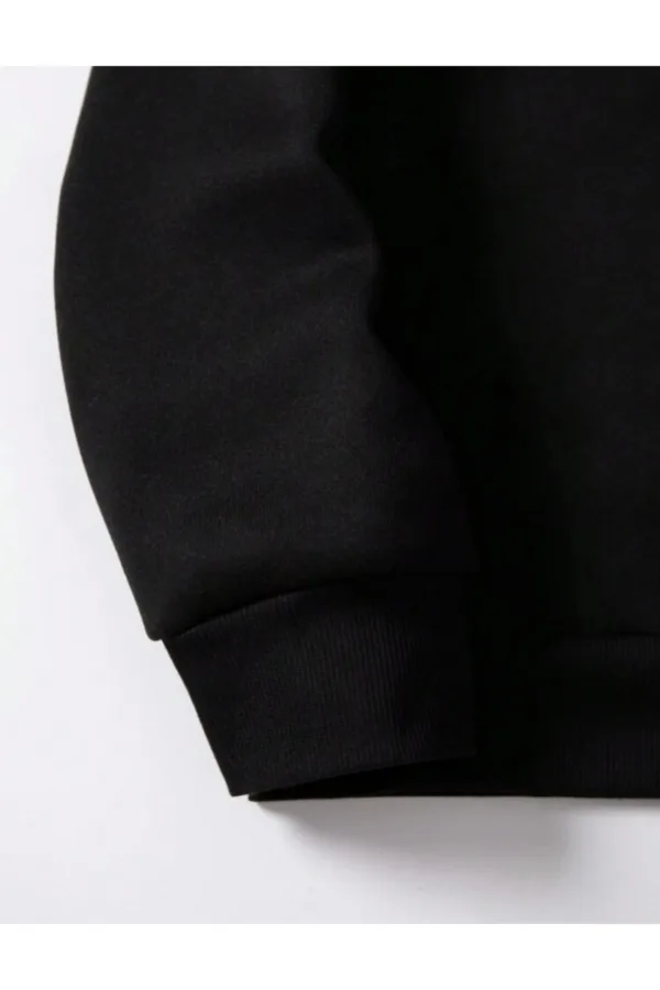 Yarım Fermuarlı Dik Yaka Siyah Sweatshirt