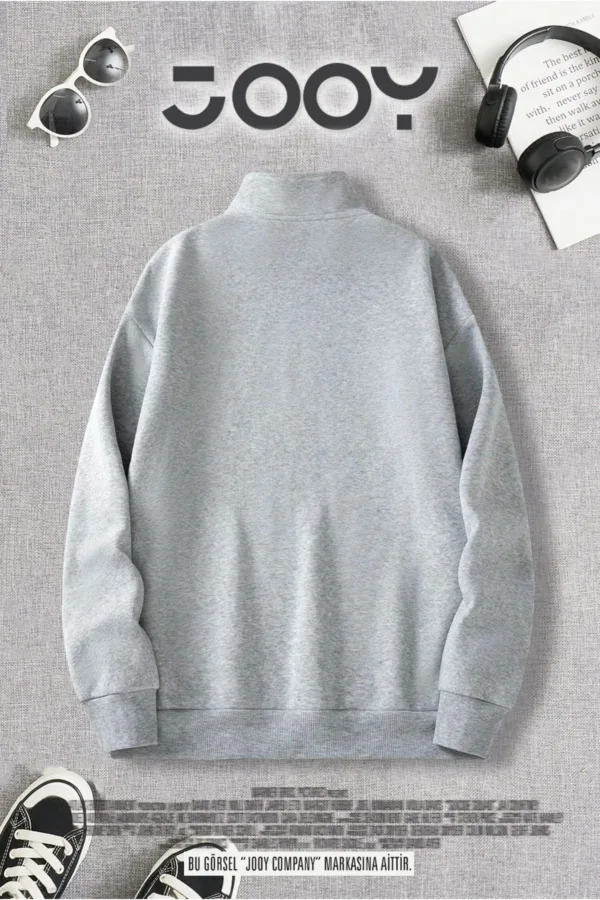 Yarım Fermuarlı Yıldız Baskılı Gri Kadın Sweatshirt