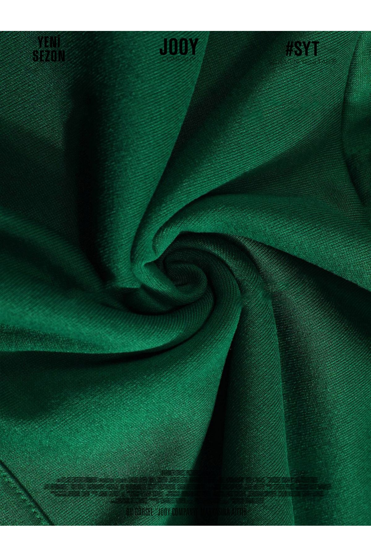 Yeşil Düz Baskısız Kalın Şardonlu 3 İplik Kapüşonlu Sweatshirt