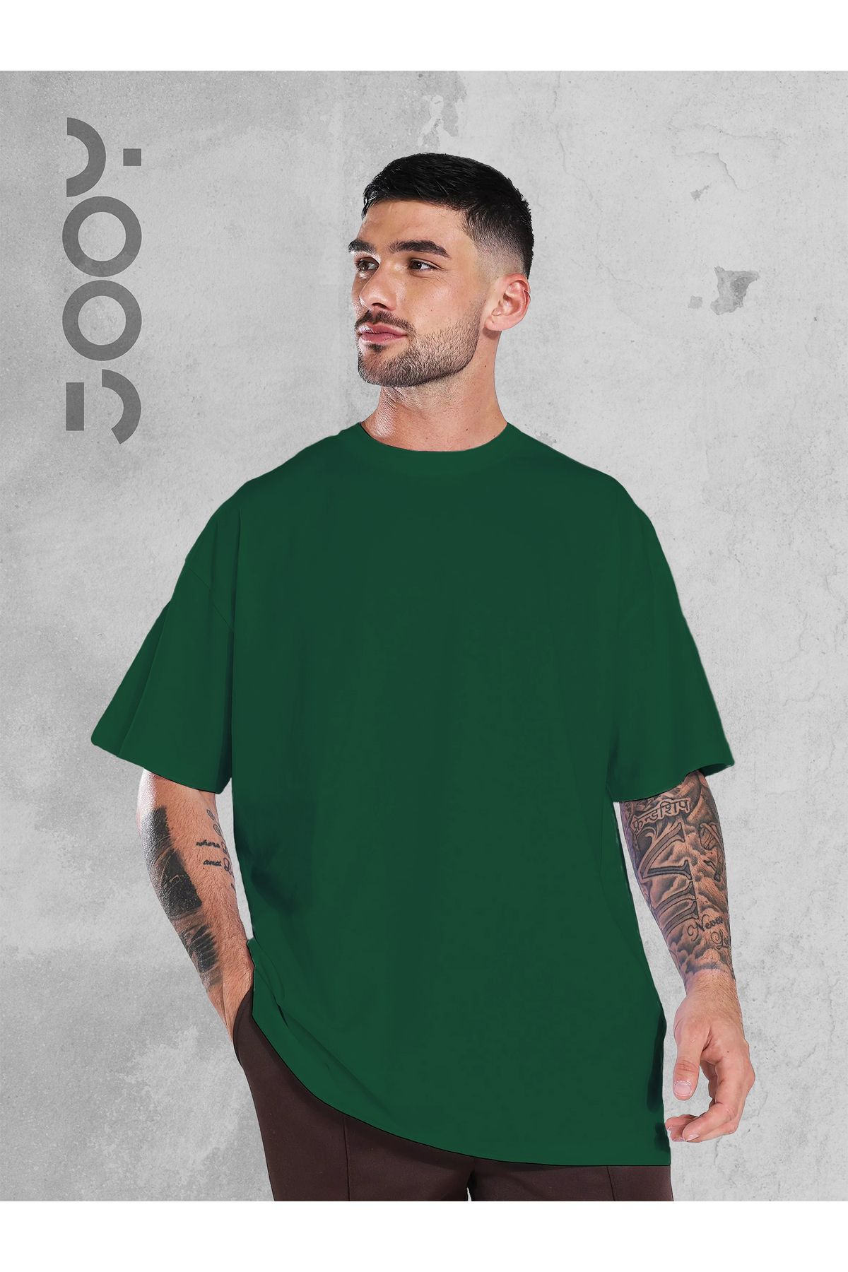 Yeşil Oversize Geniş Kalıp Düz Baskısız Basic Tshirt